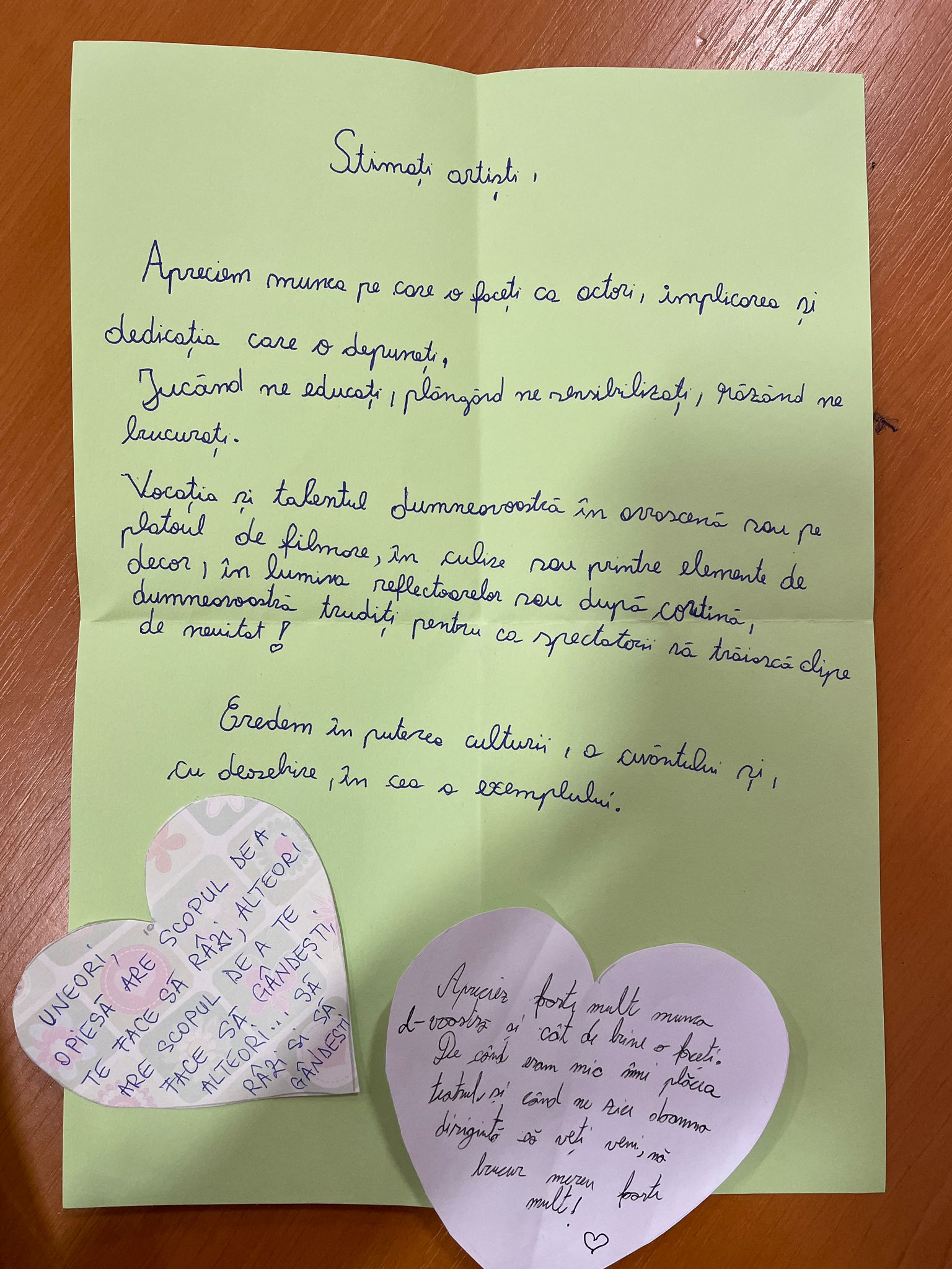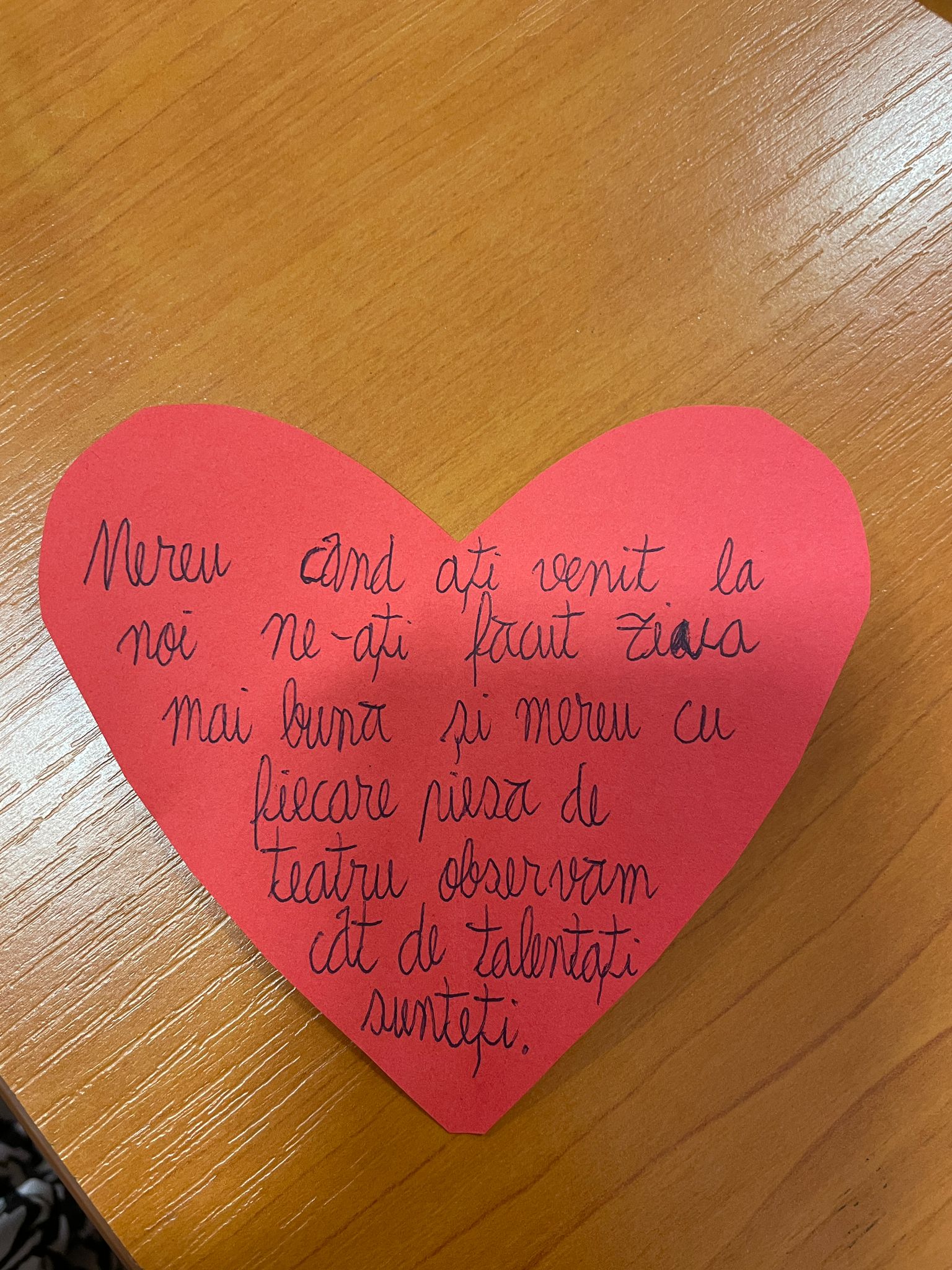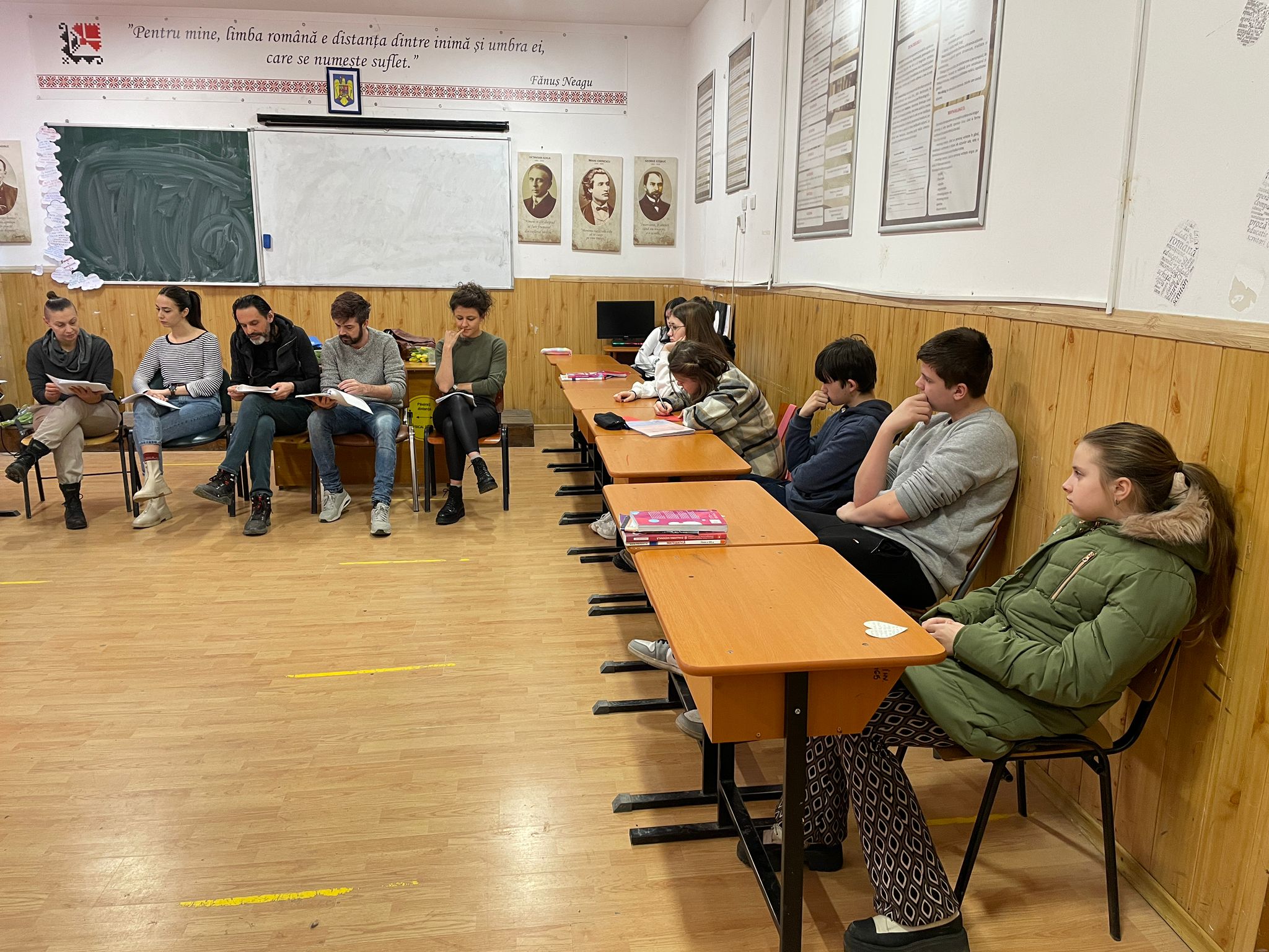 Asociația Un concept LUNA (Luana Popa, Dinel Teodorescu) și actori ai Teatrului Matei Vișniec (Delu Lucaci, Diana Lazăr, Horia Andrei Butnaru), au oferit elevilor noștri, din nou, șansa „de a descoperi importanța și bucuria artelor prin spectacole-lectură”. Textul de astăzi („Pământ!”), scris de Lise Martin, scriitoare, actriță și regizoare franceză, ne-a îndemnat la reflecție. Subiectul, de actualitate, a readus în atenția copiilor dezumanizarea persoanei și întrebarea: de ce ucid oamenii? Răspunsul este inserat discret, la sfârșitul piesei…„Ce se mai poate întâmpla acum?/Ale cui sunt aceste pământuri? Ale cui sunt aceste pământuri?/Suflă vântul discordiei./Nimeni nu-l ascultă pe celălalt. /Nimeni nu ascultă vântul./Al cui e acest pământ./ Al viermilor de pământ poate.” Impactul textului a fost puternic: „piesa mi s-a părut, tristă dar și amuzantă, datorită interpretării, plină de mister și aventură”; „nu m-am gândit că există oameni atât de mincinoși și de nedrepți, precum Ketal, fără strop de milă, zgârcit și nedrept cu lucrurile celorlalți”; „mie mi-au plăcut și actorii foarte mult, deoarece intră în rol foarte bine. Piesa a fost foarte interesantă, ba chiar eu parcă vedeam locul unde se întâmplă acțiunea.” Concluzia: misiunea invitaților noștri a fost încununată de succes, micii iubitori de teatru așteptând cu nerăbdare următoarea vizită.